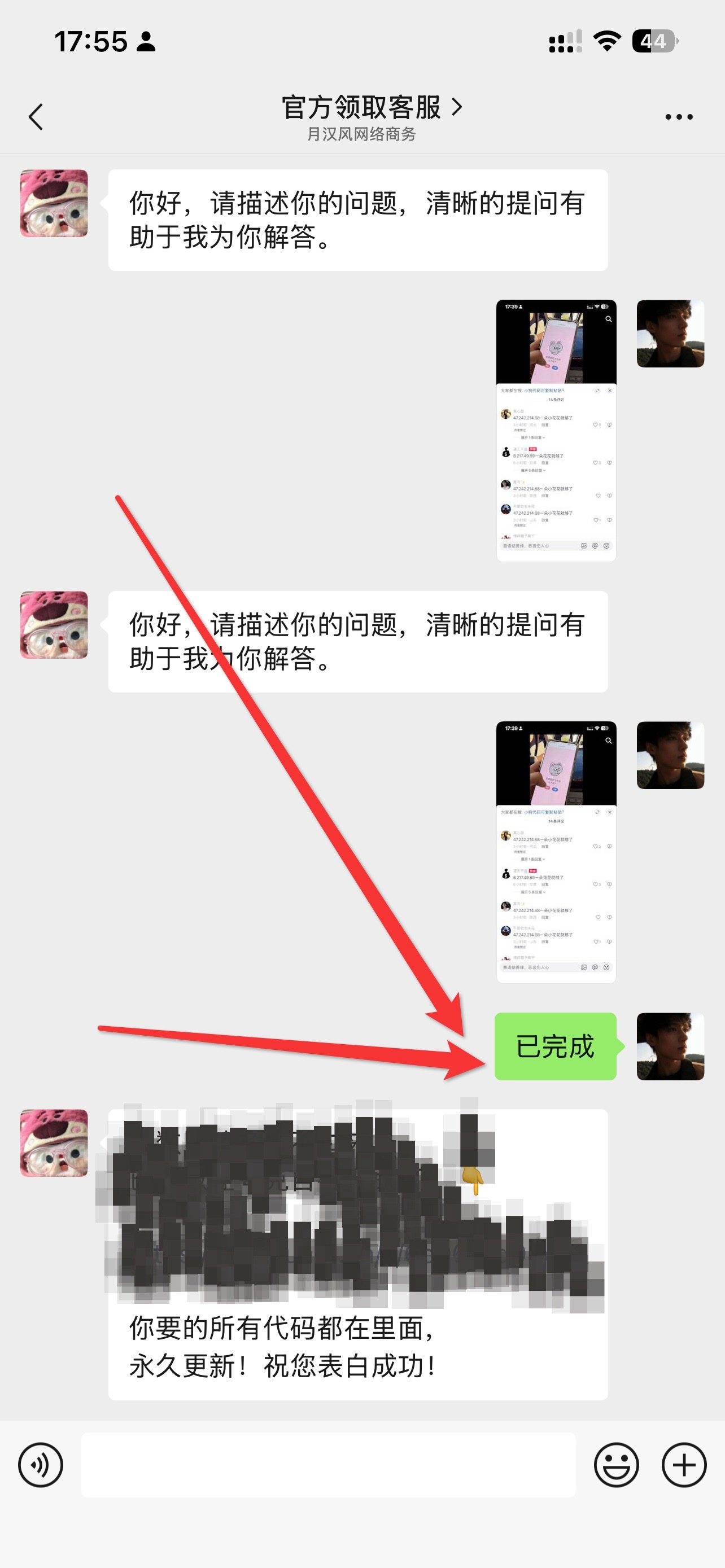 第三步: 返回发 5 张评论区截图给客服,